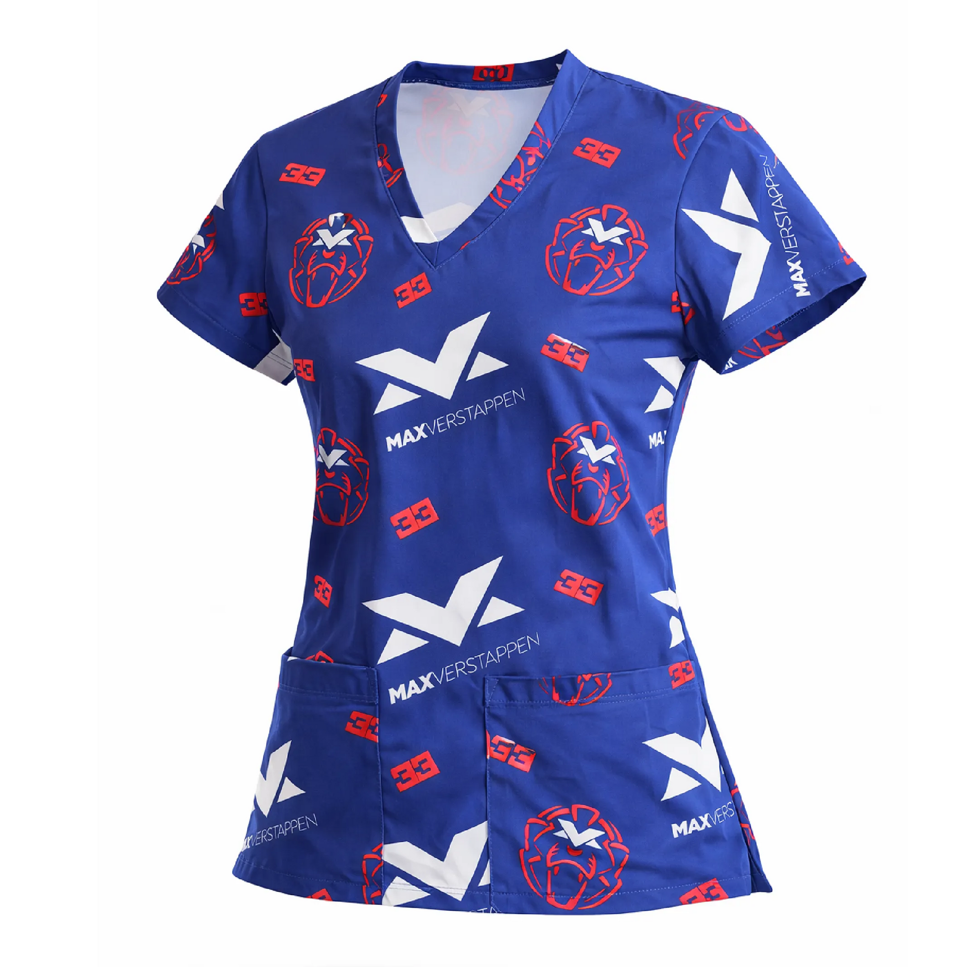Inspirado en el mundo del automovilismo y la adrenalina de la velocidad. Su fondo azul profundo combinado con gráficos dinámicos en blanco y rojo transmite energía, precisión y determinación, ideal para profesionales de la salud fanáticos de Max Verstappen.